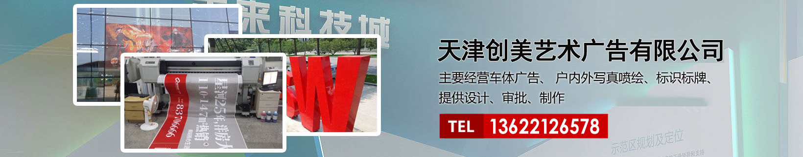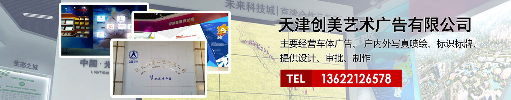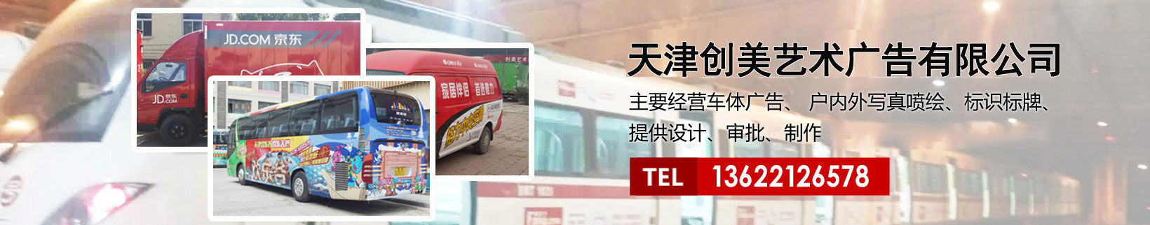 天津創(chuàng)美藝術(shù)廣告有限公司主要經(jīng)營(yíng)車(chē)體廣告、 戶(hù)內(nèi)外寫(xiě)真噴繪、標(biāo)識(shí)標(biāo)牌、提供設(shè)計(jì)、審批、制作、發(fā)布的服務(wù)。